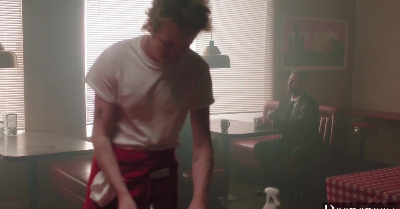 «Худышка во время обеда в ресторане сделала то, чего мужик никак не рассчитывал, эта цыпочка залезла под стол и взялась сосать его толстый хуй. В зале почти никого не было, только официант, который не стал паре запрещать развлекаться. Так что уже вскоре стройная цыпочка с маленькими сиськами занималась жарким сексом прямо на столе. Мало того, девчонка так завелась, что ещё и в узенькую попку отдалась.»